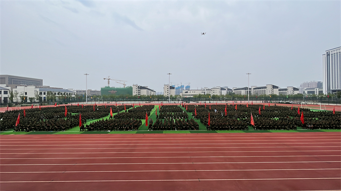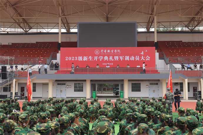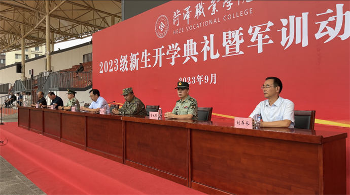 中国山东网-感知山东9月12日讯 9月11日,菏泽职业学院举行2023年新生开学典礼暨军训动员大会,2023级5000余名新同学参加开学典礼。